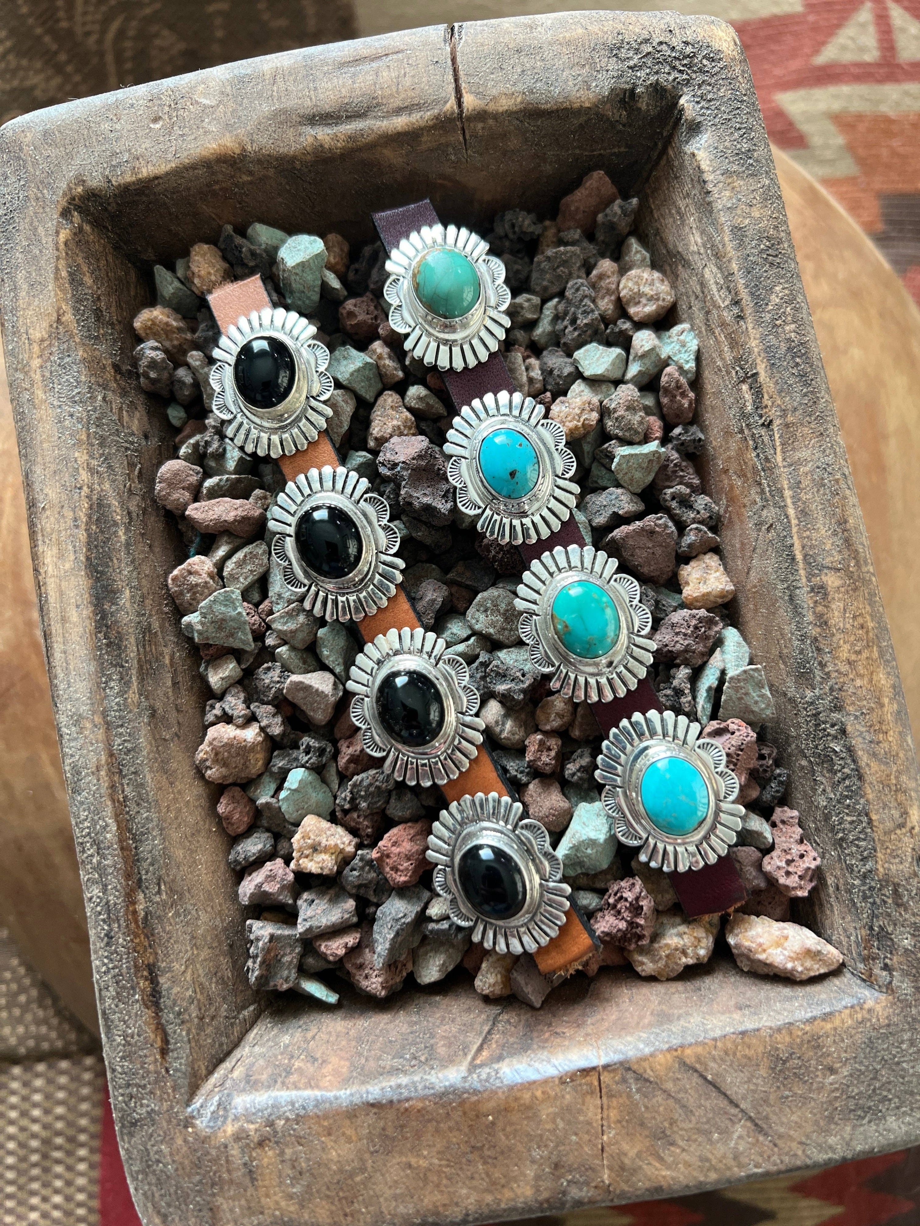Turn your leather band into a showcase of Kingman turquoise with these breathtaking concho slides.