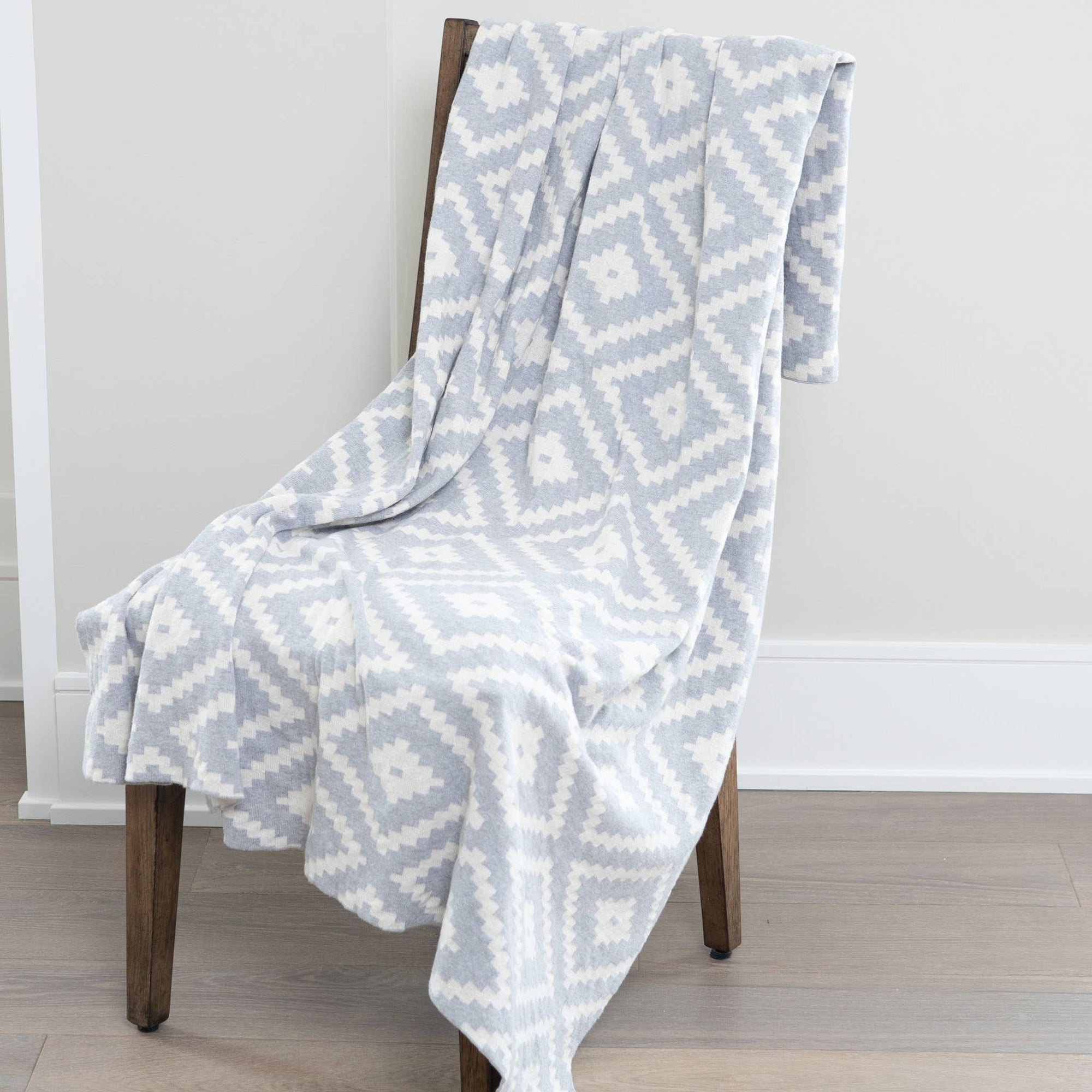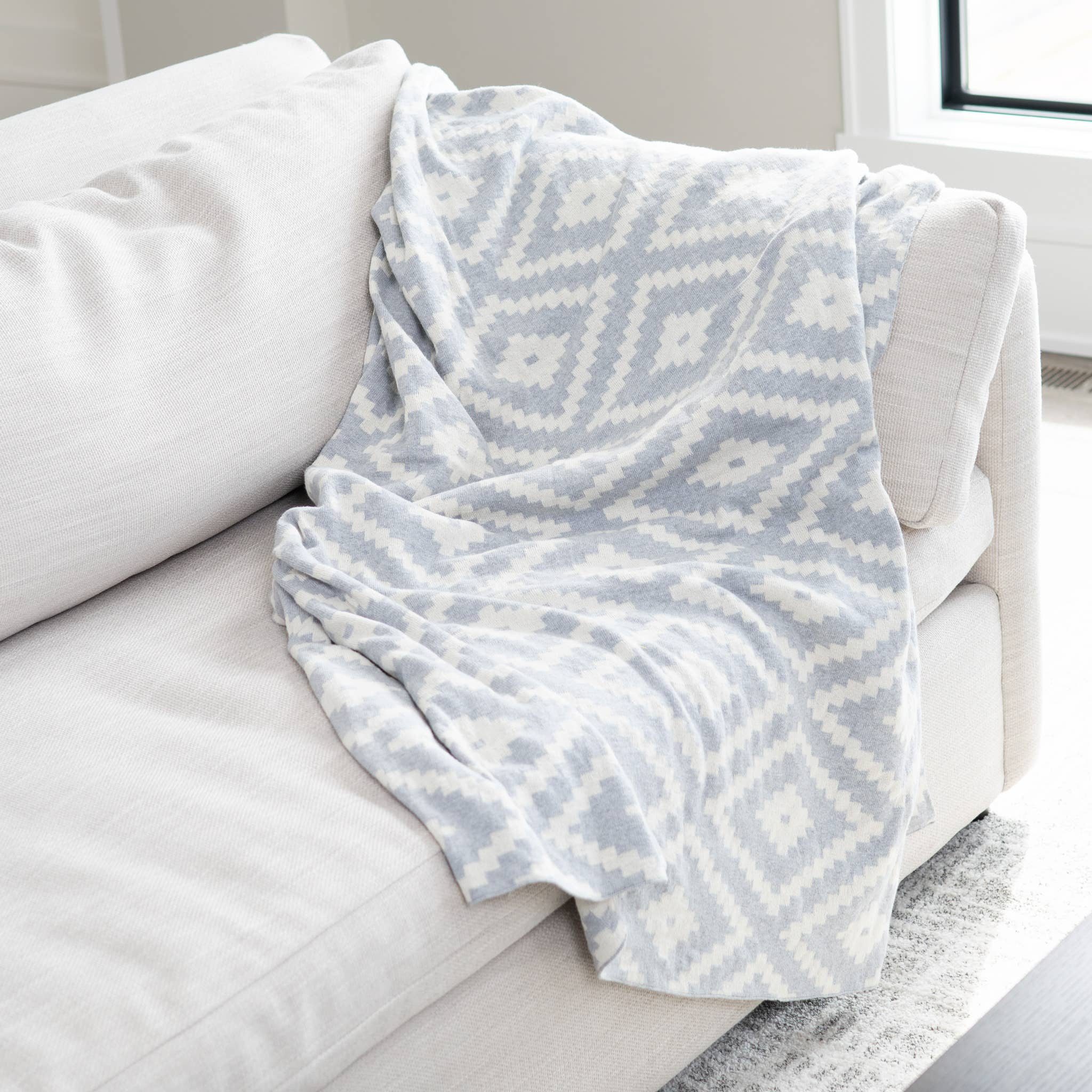 Keep your home cozy with the 50x60 Auden Throw Blanket. Featuring a subtle Aztec-inspired design in a neutral gray and white, made with recycled cotton, and Oeko-Tex Standard 100 Certified, this throw blanket will bring both interest and warmth to your space.