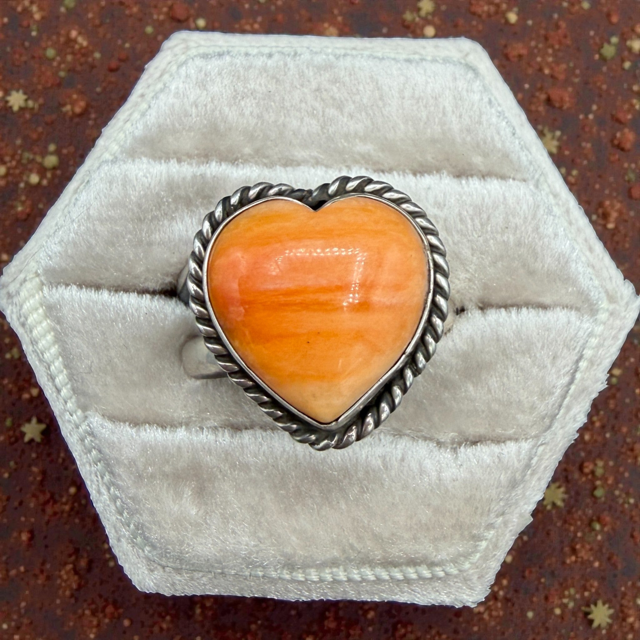 The Valentine's Day Collection- Orange Spiny Oyster Heart Ring – Adjustable By Reeva Goodluck