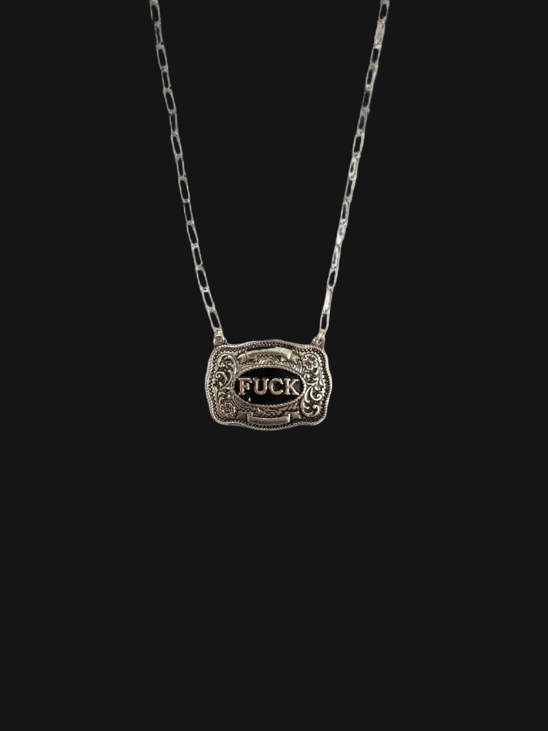 When words just don’t cut it — let your jewelry do the talking. The “Zero Fks Given” Necklace brings unapologetic Western sass to your look with a bold engraved belt buckle pendant that says exactly what you’re thinking.