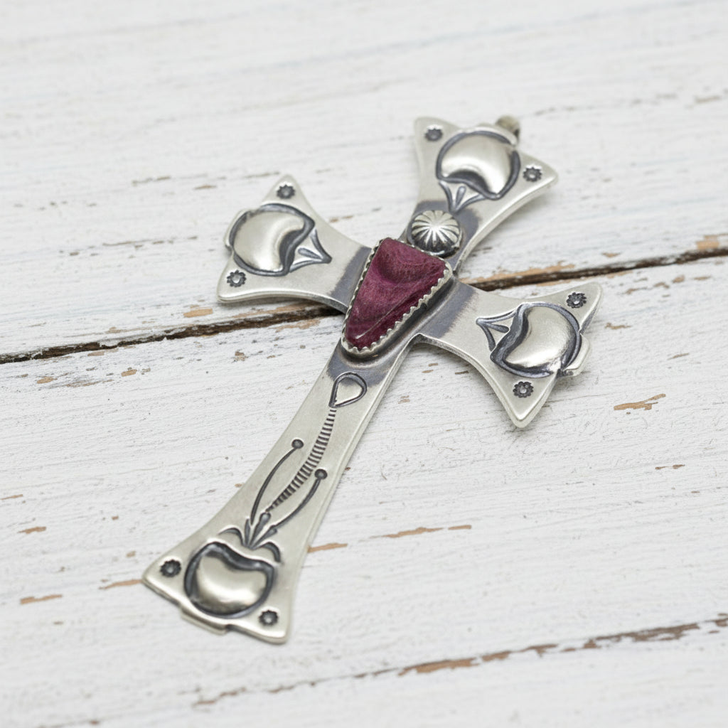 Navajo Sterling Silver Cross Pendant with Purple Spiny Oyster