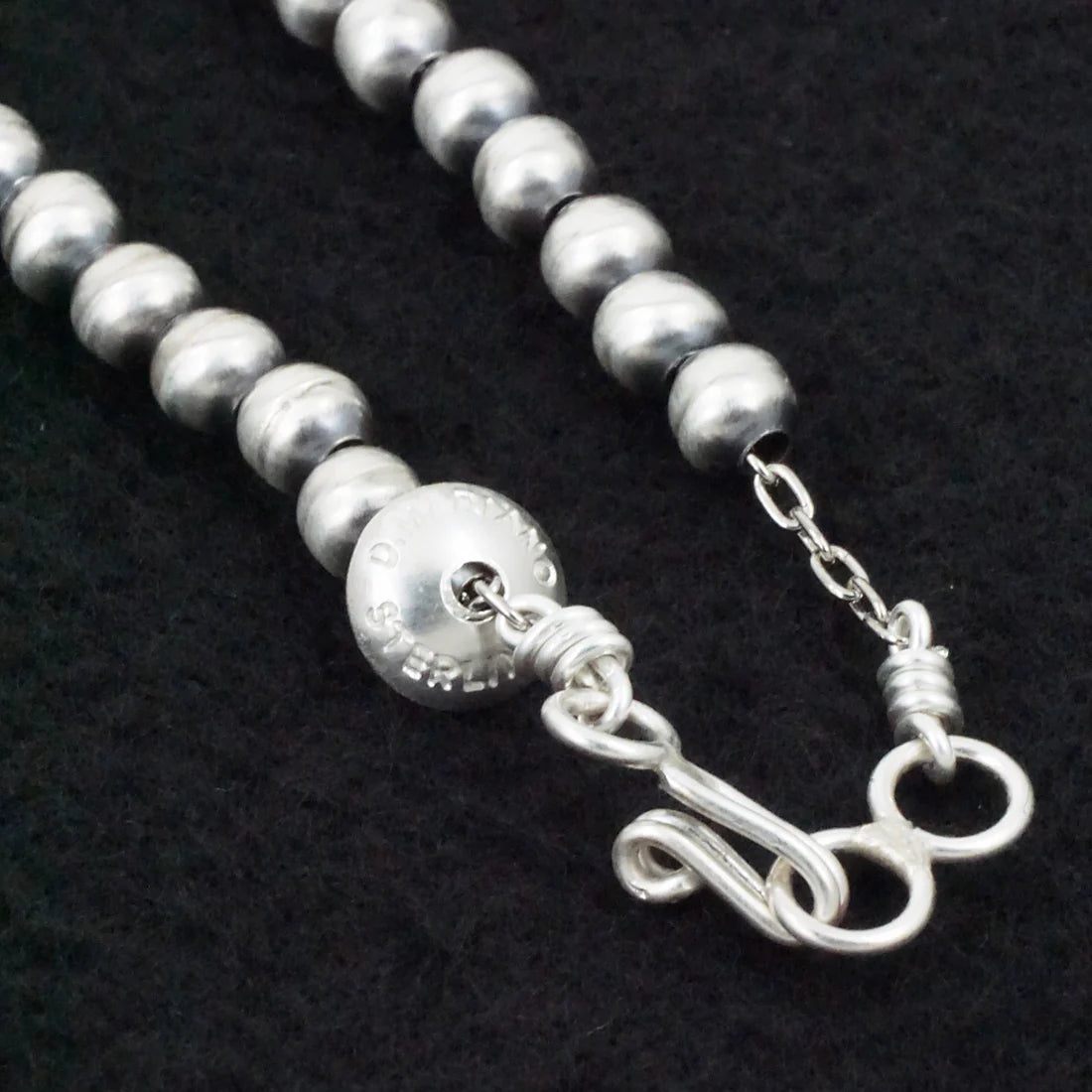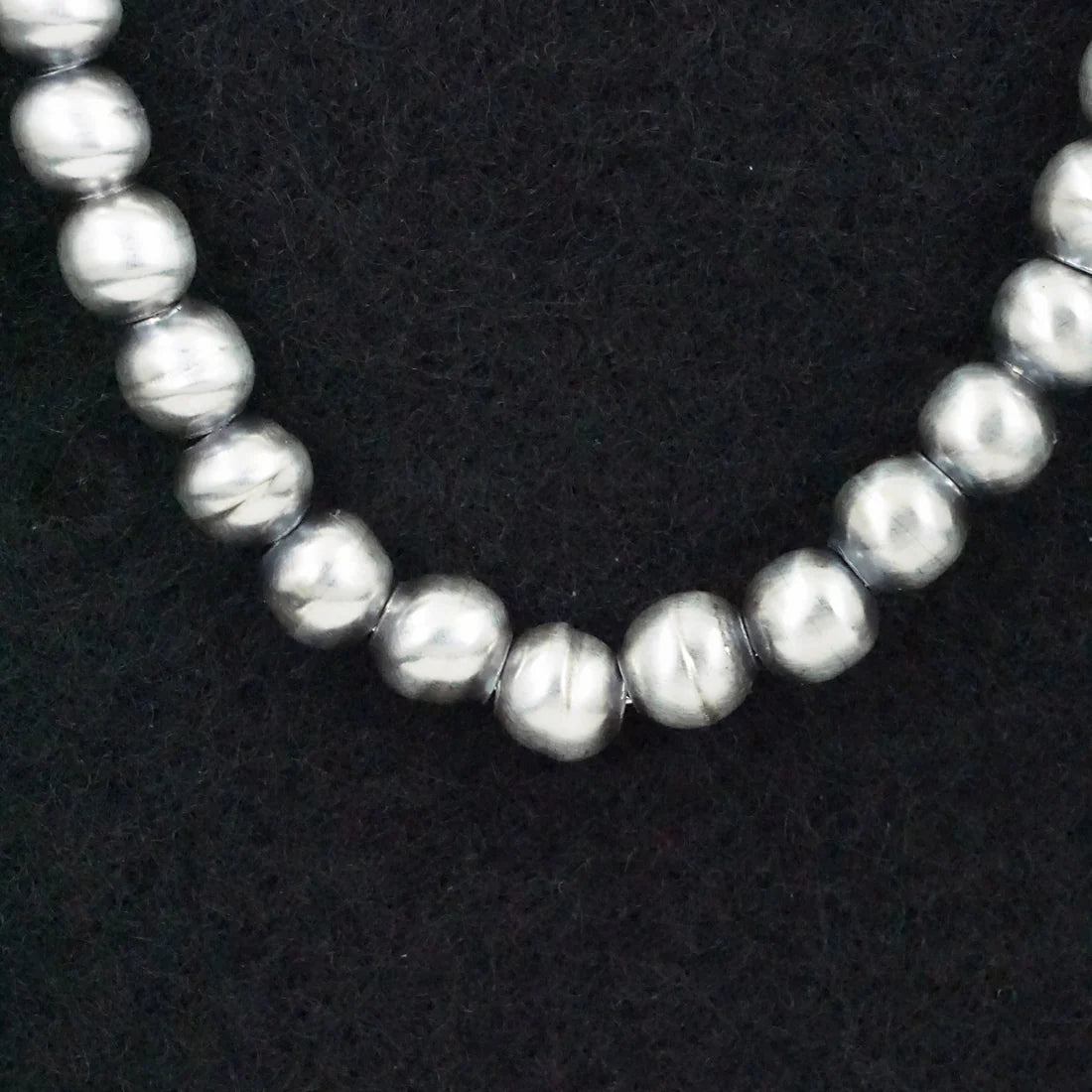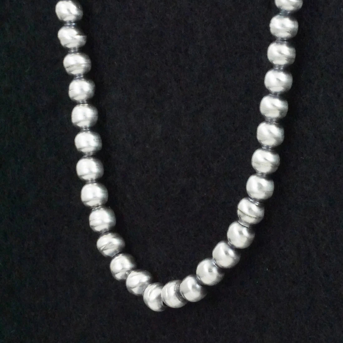 Handcrafted by Navajo silversmith Bryannen Halwood, this 16” sterling silver pearl necklace features perfectly rounded 5mm (3/16”) beads for that versatile, everyday Western staple look.