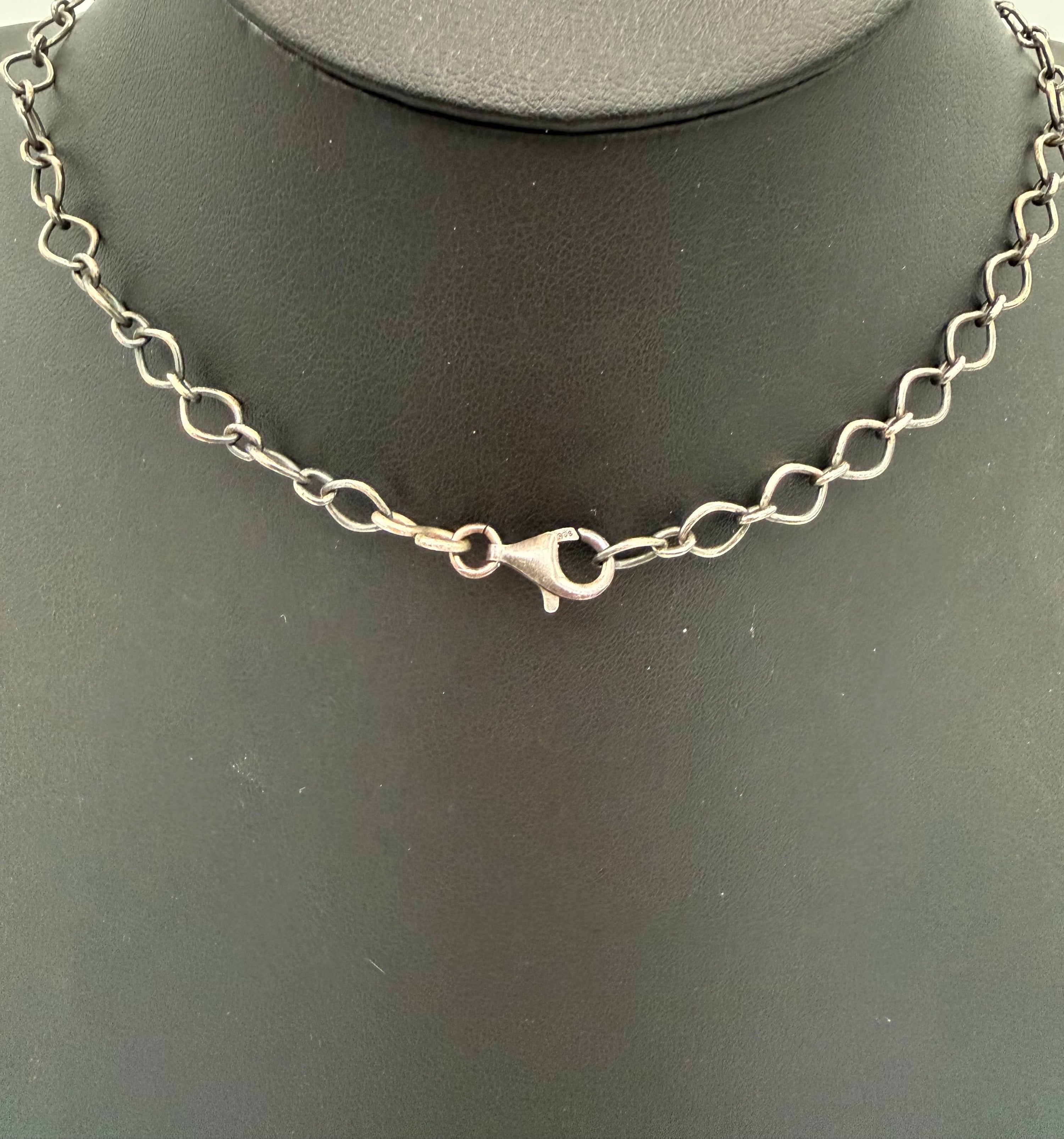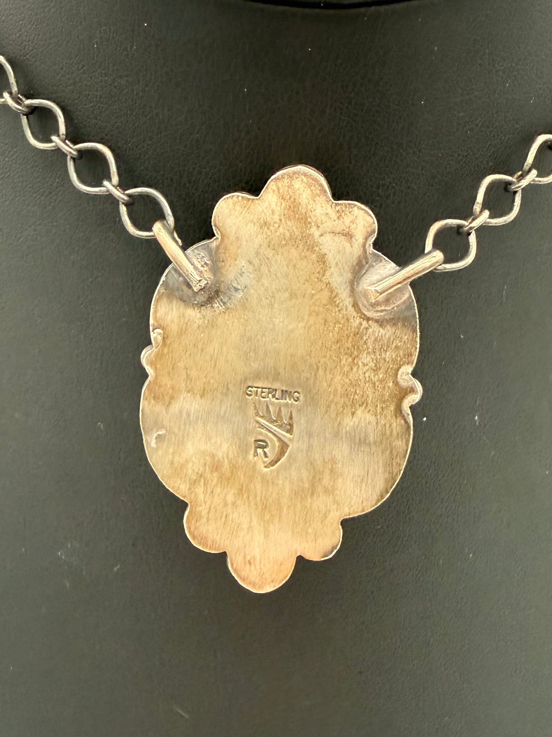 Hung on a substantial 20” sterling chain, this sits perfectly at collarbone level. Long enough to command attention. Short enough to stay powerful.