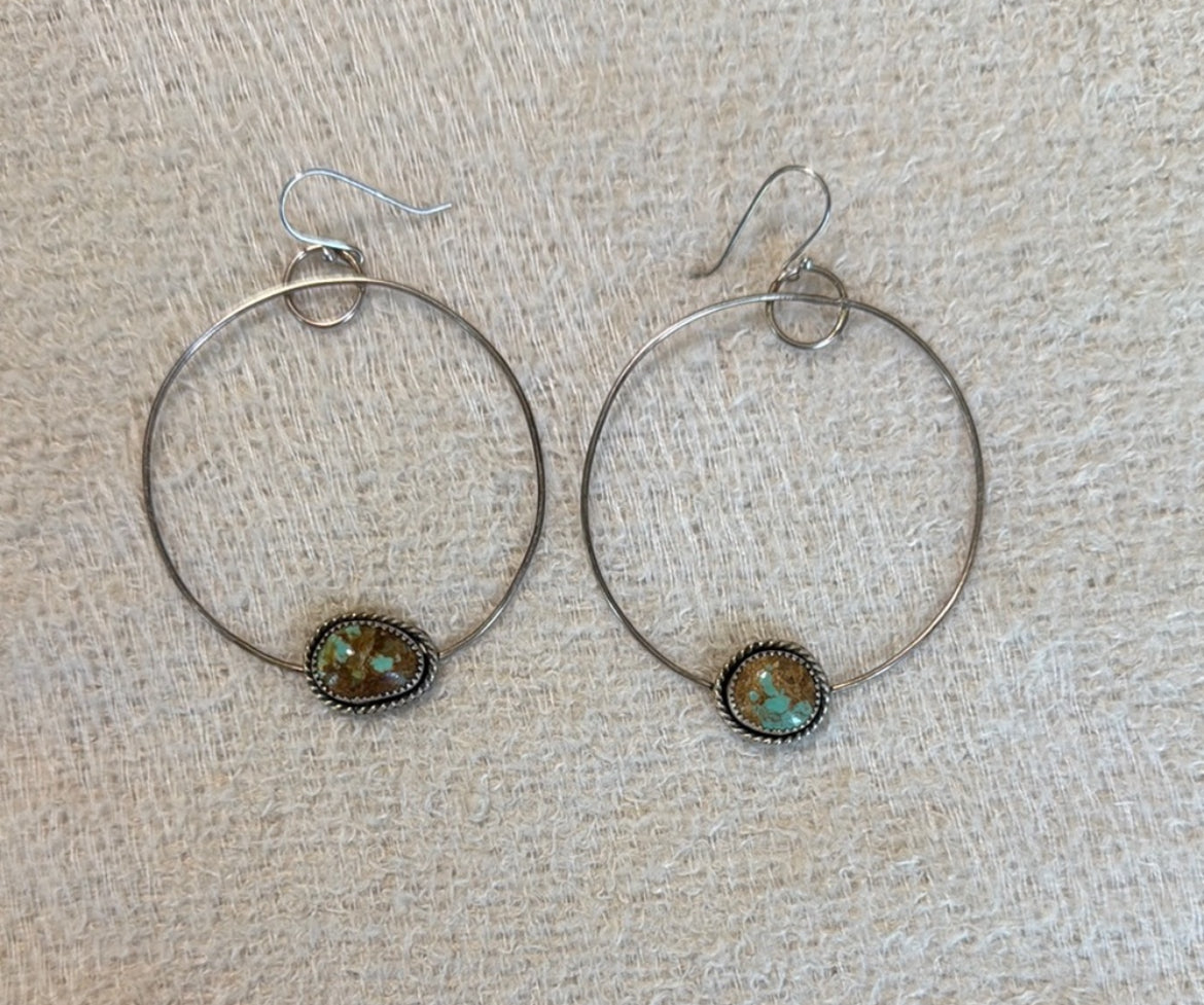 2.25” Sterling silver and Royston hoop earrings. Handmade by Lauren Glenn of Azure Sky