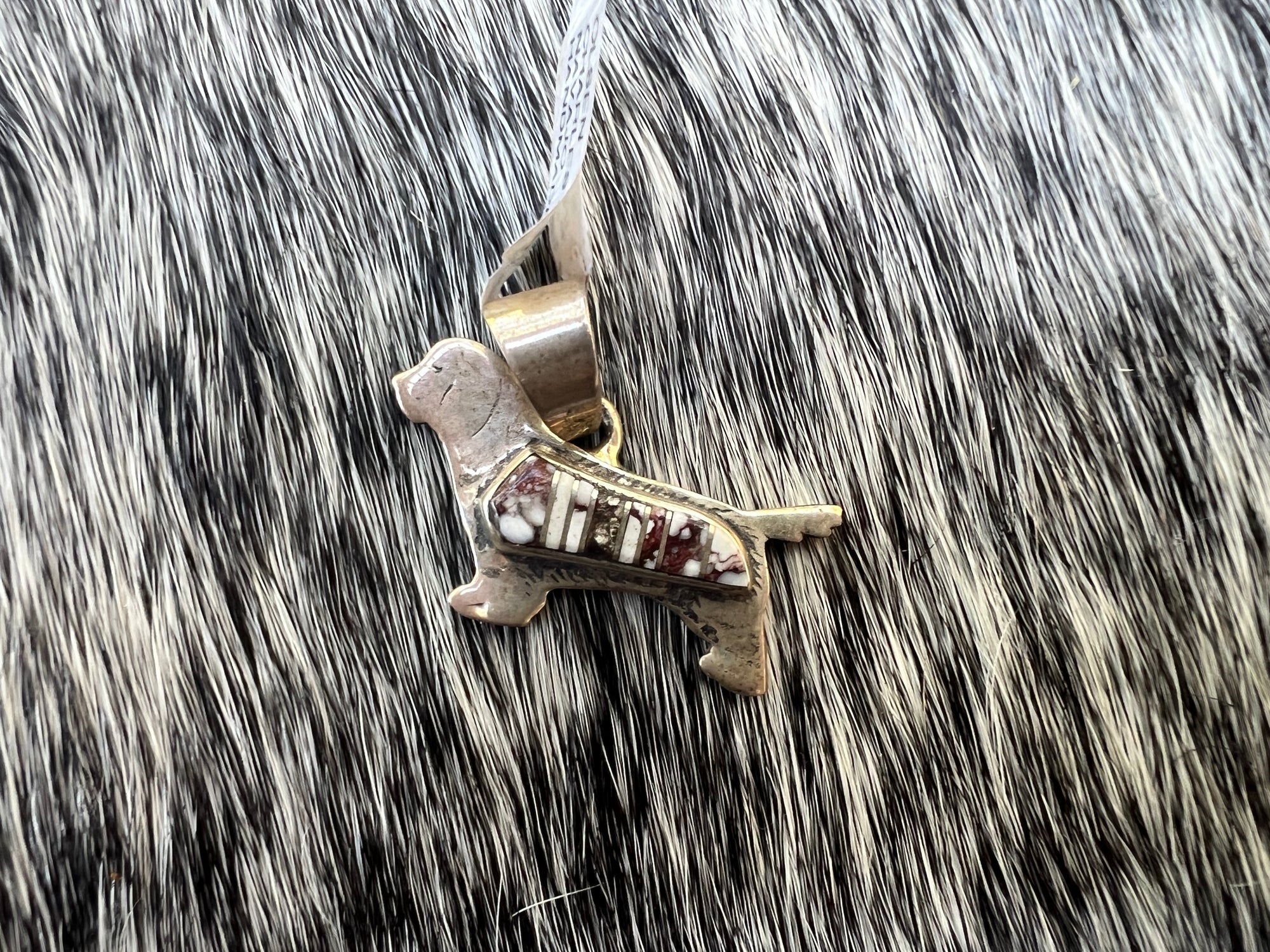 ✨ Design: Dog-shaped inlay pendant with fine silverwork