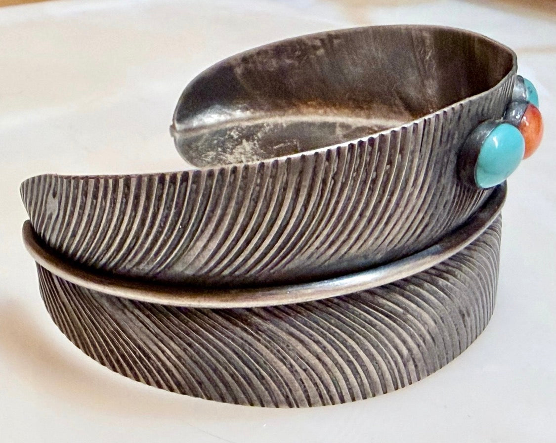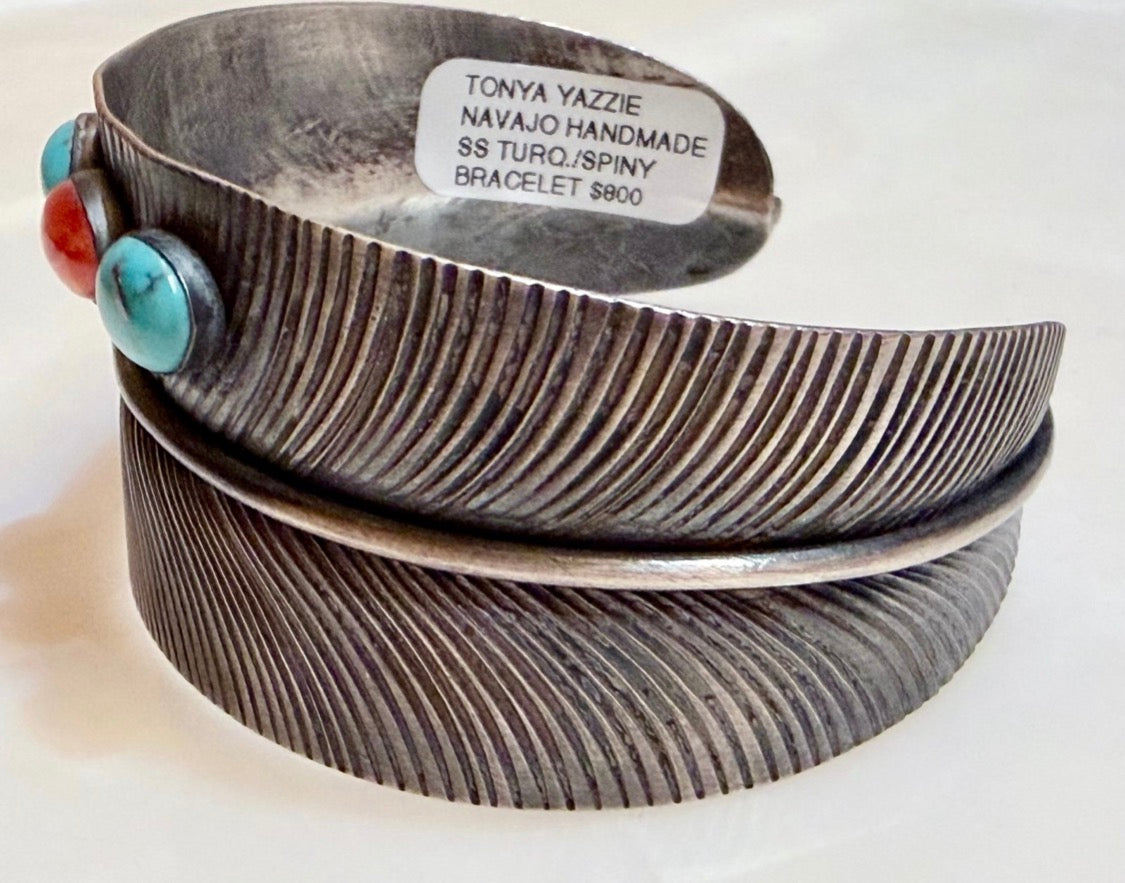 Spiny & Golden Hills Feather Cuff by Tonya Yazzie