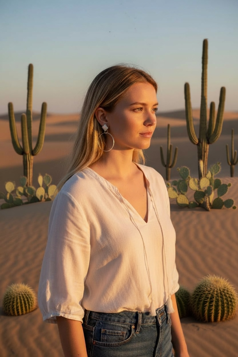 The hammered sterling hoops swing freely below, detailed with delicate hand-stamped patterns that give them that true artisan edge. Whether you’re dressing up your denim or adding a little Western glam to your night out, these hoops are effortlessly radiant and perfectly punchy.