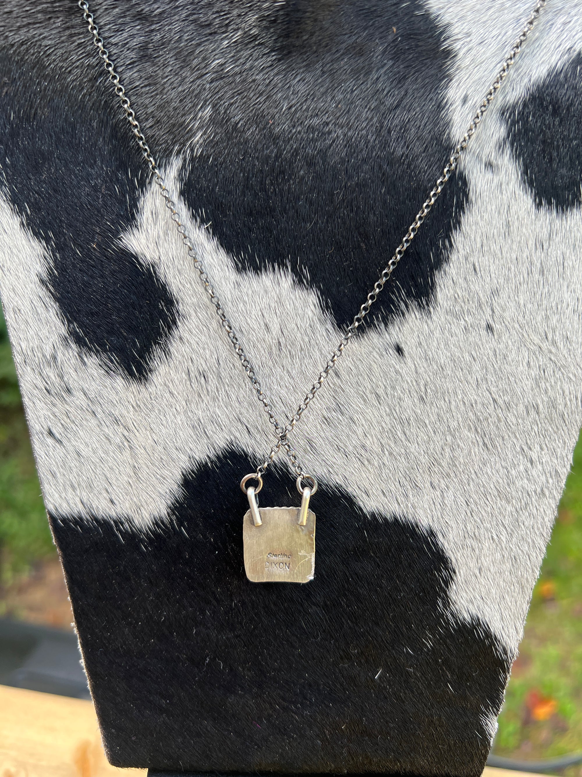 White Buffalo Turquoise Square Necklace — Johnny Dixon (Navajo)