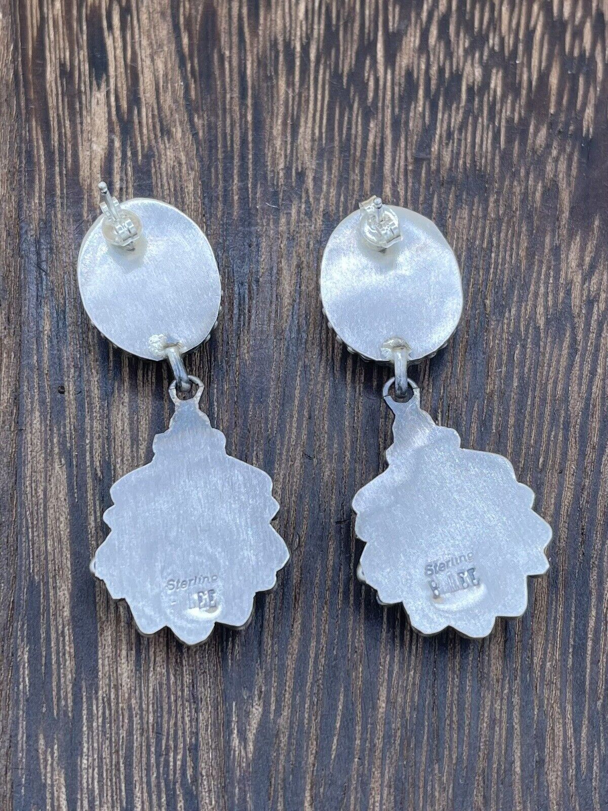 These earrings are perfect for women who love to wear unique, ethnic jewelry. The silver and turquoise combination gives them a classic yet trendy look. Signed by the artist, these earrings are a one-of-a-kind piece that you won't find anywhere else.