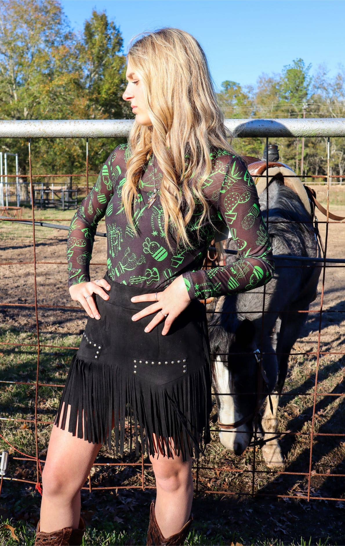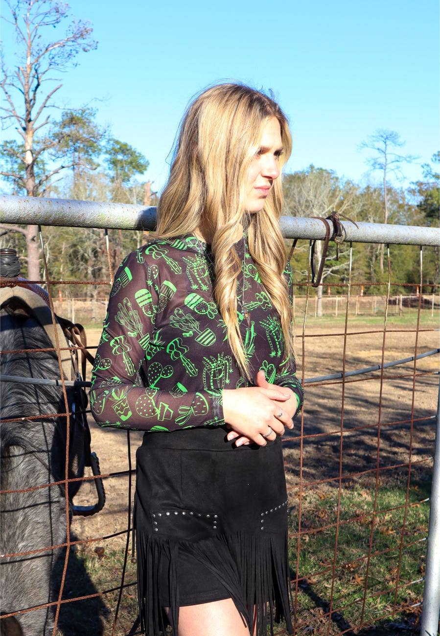 Green Cactus LS Mesh Top