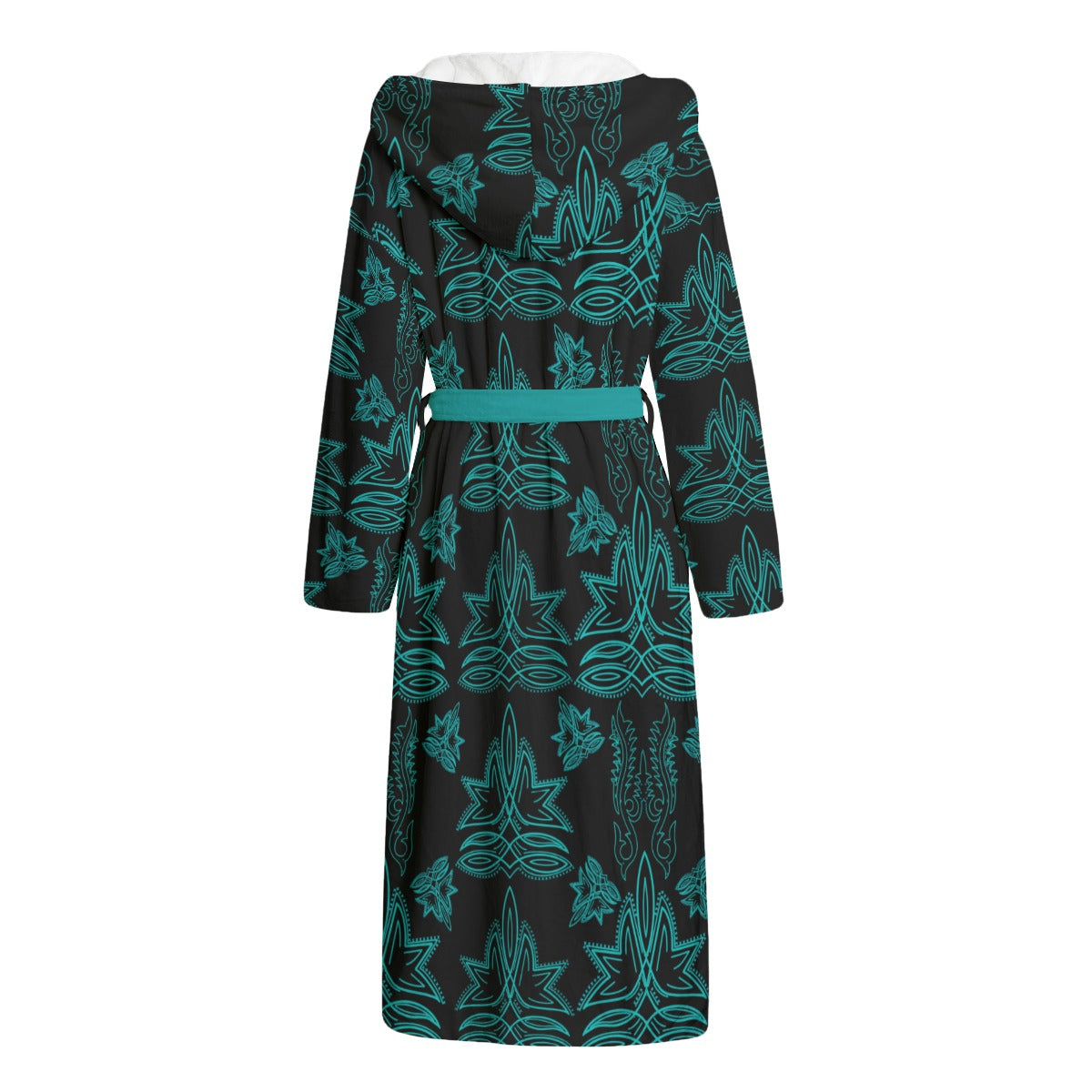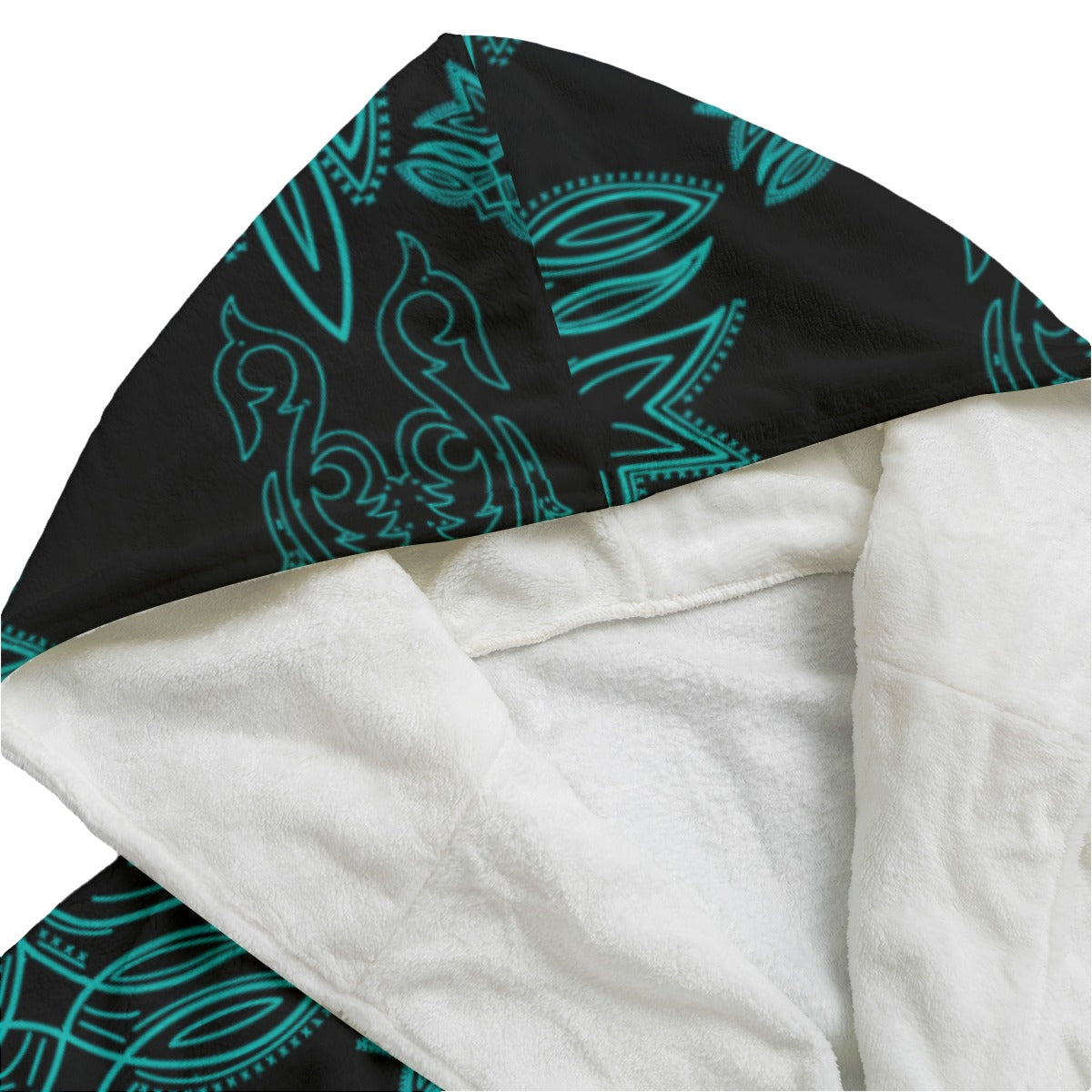 Thick, ultra-soft flannel robe with hood and waist belt. Cozy without looking sloppy.
