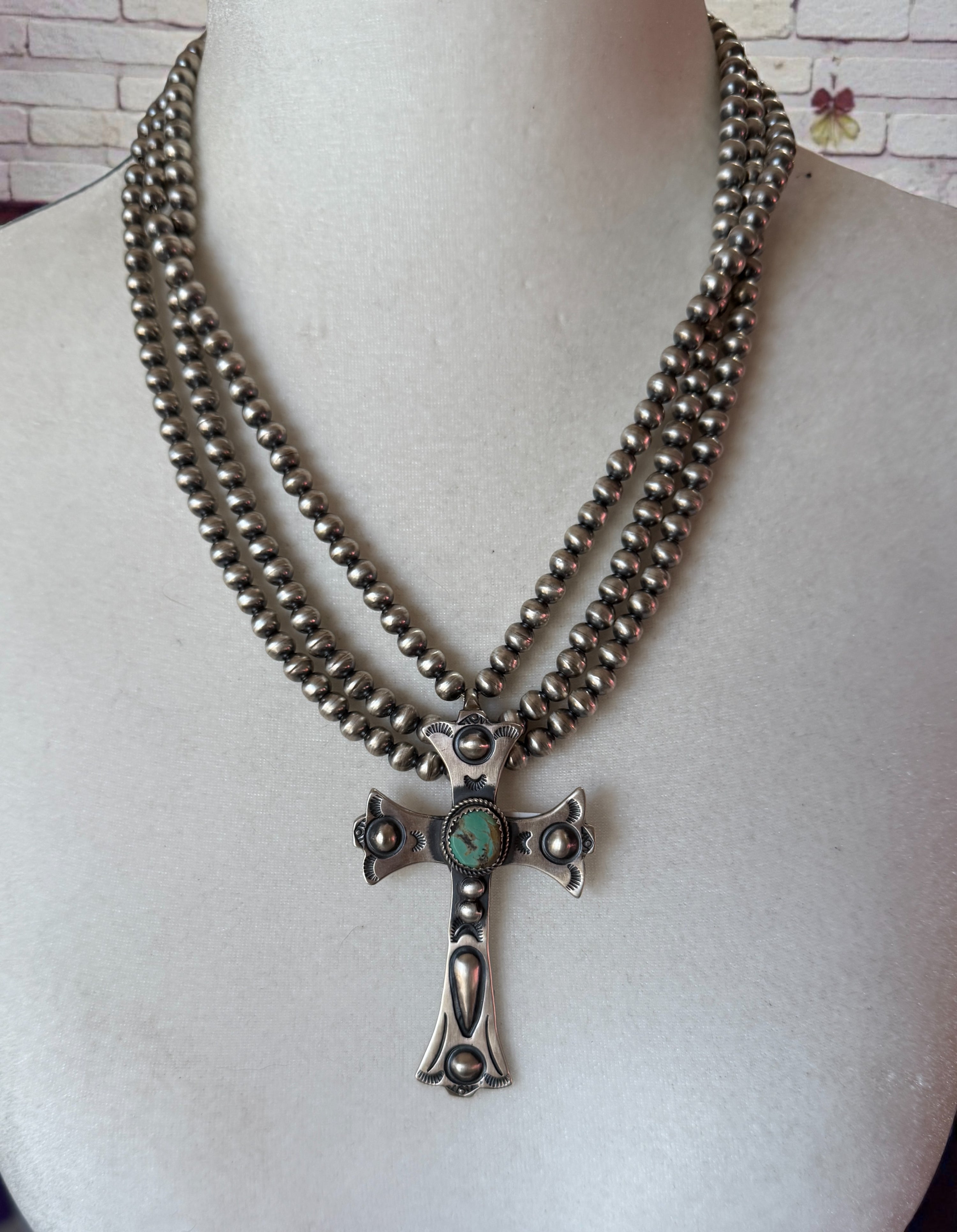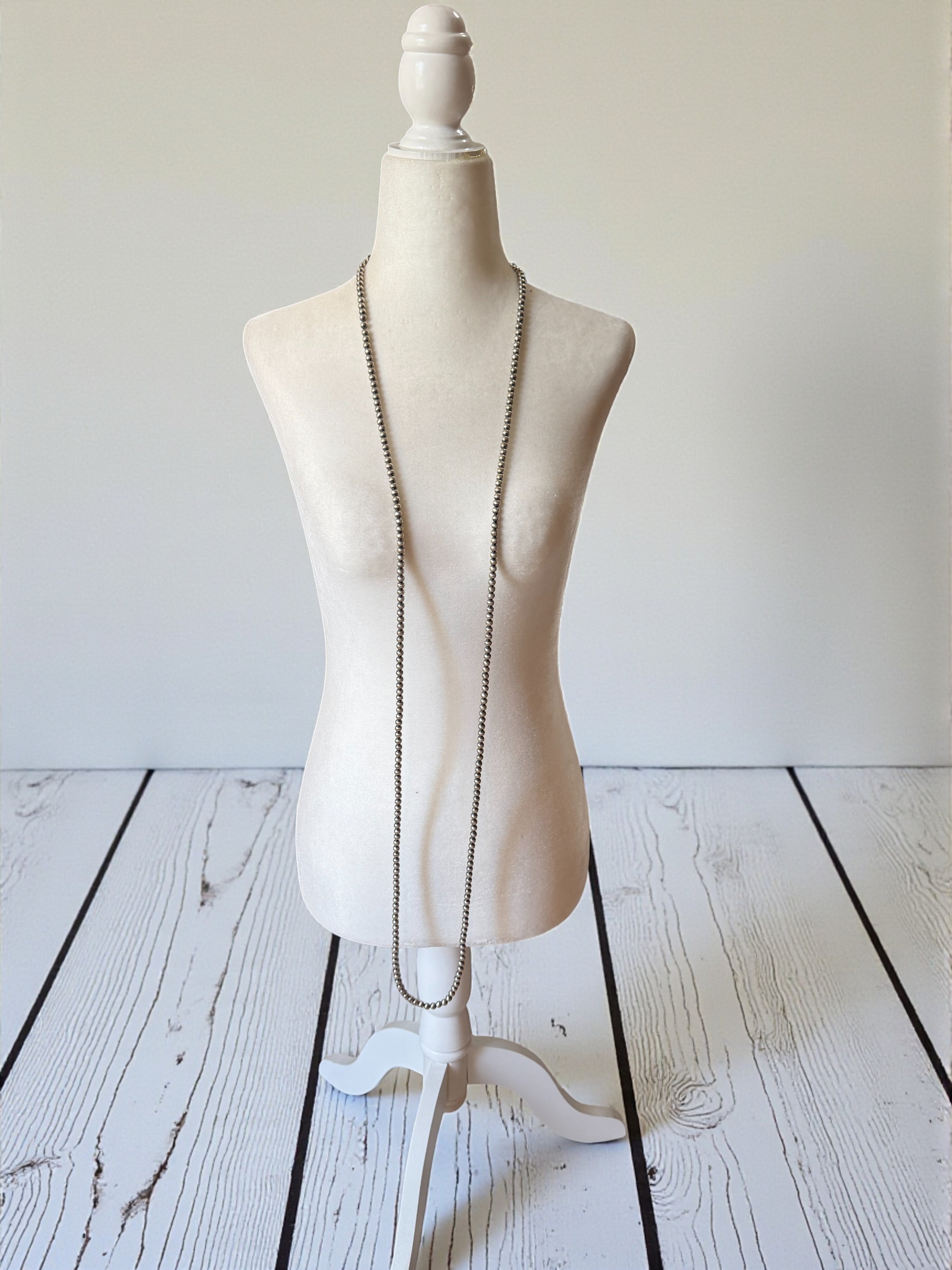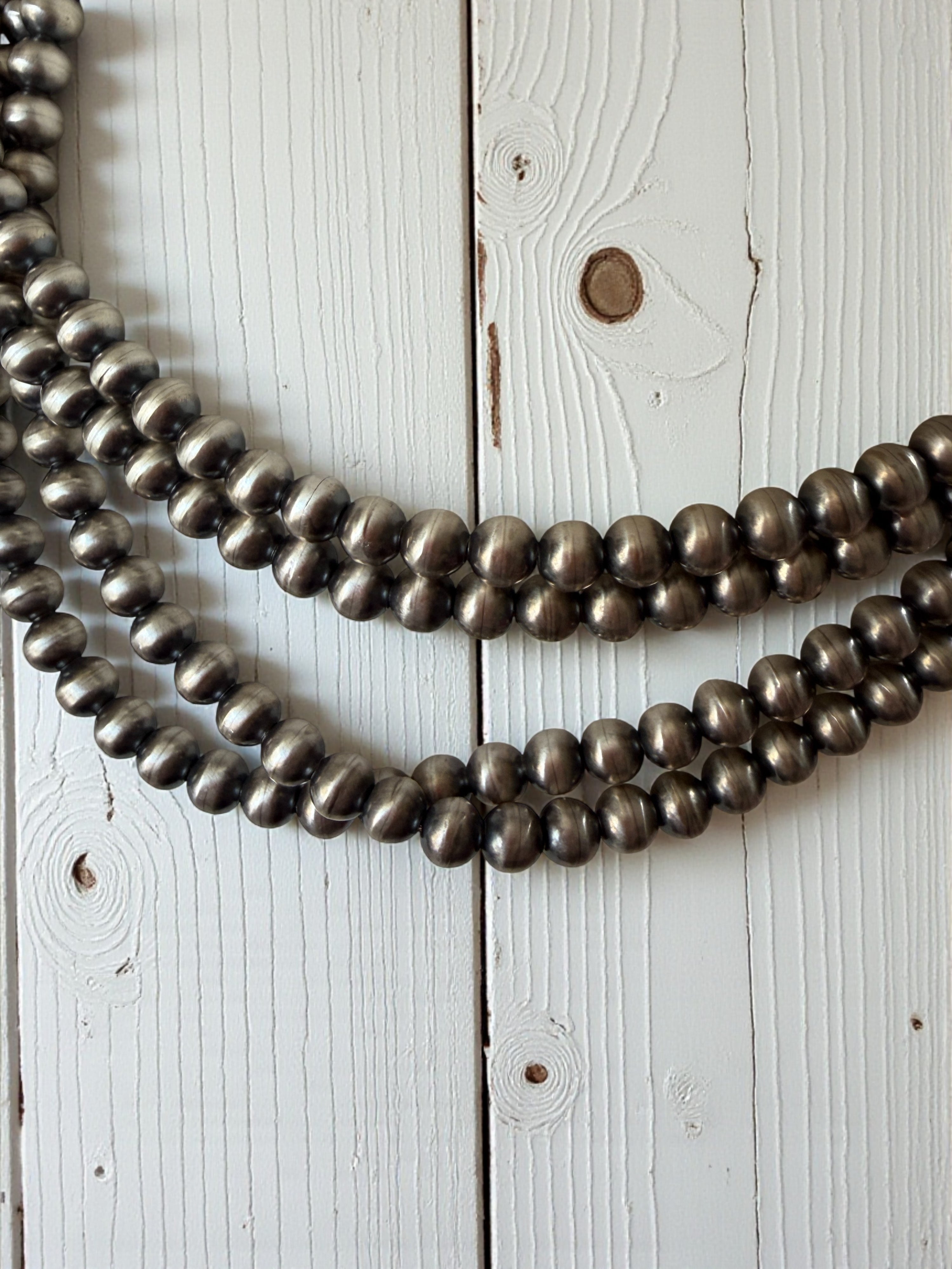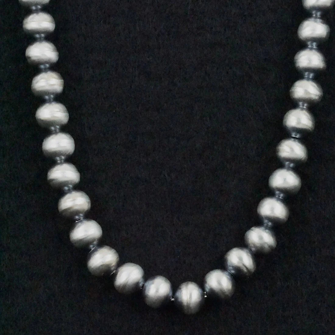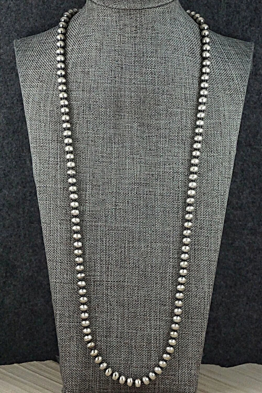 Handcrafted by Navajo silversmith Dorinda Mariano, this 60” sterling silver pearl necklace features classic 6mm (1/4”) beads and offers unmatched versatility.