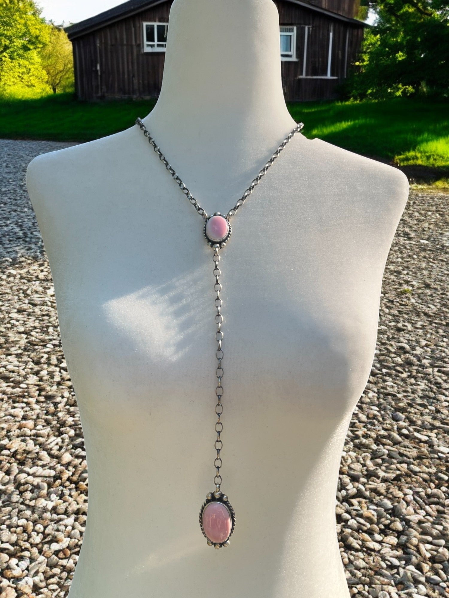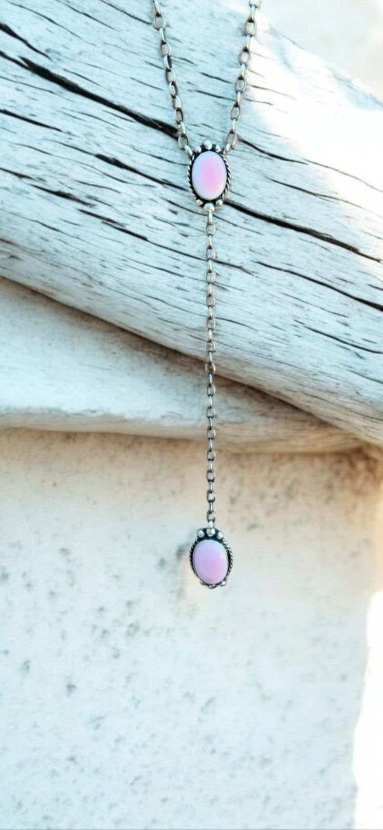 Navajo Pink Conch Lariat — Handmade Sterling by Augustine Largo