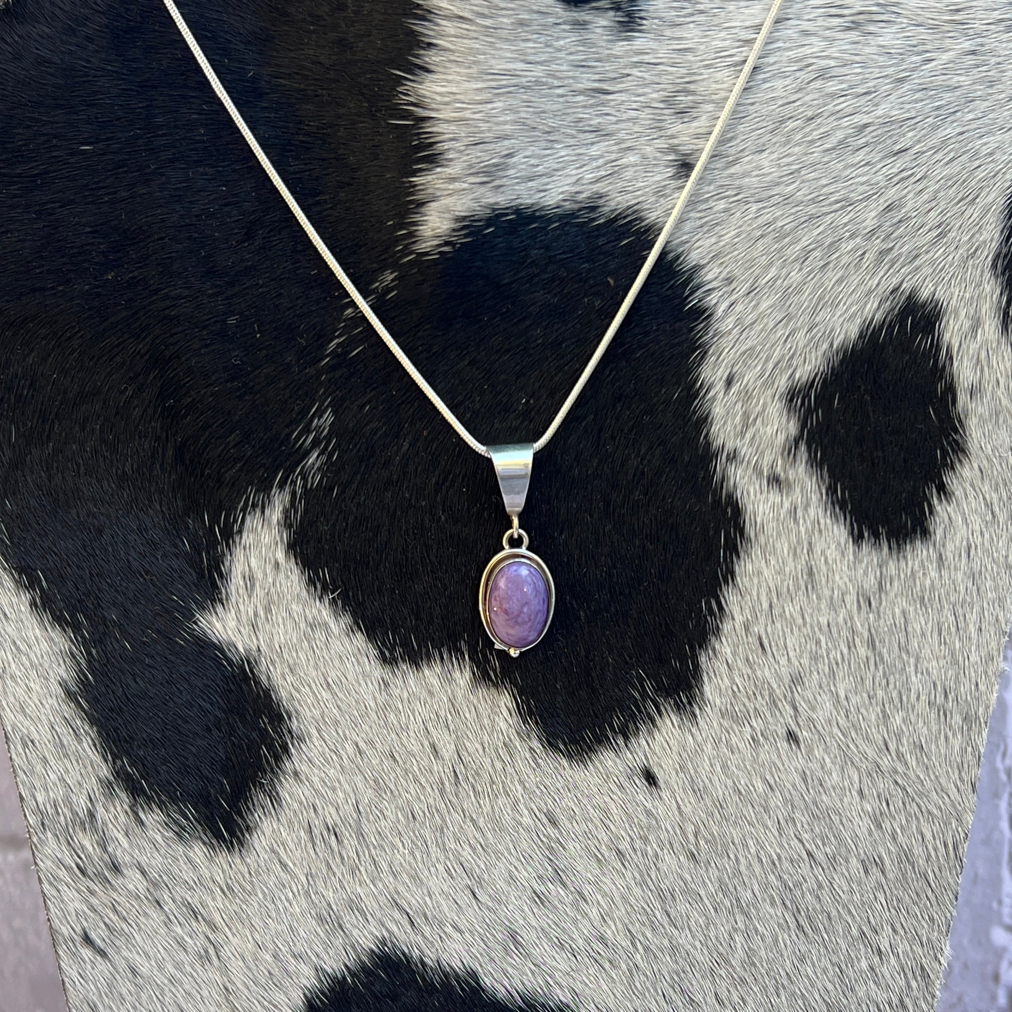 Peggy Skeets Charoite Pendant on 20” Sterling Snake Chain