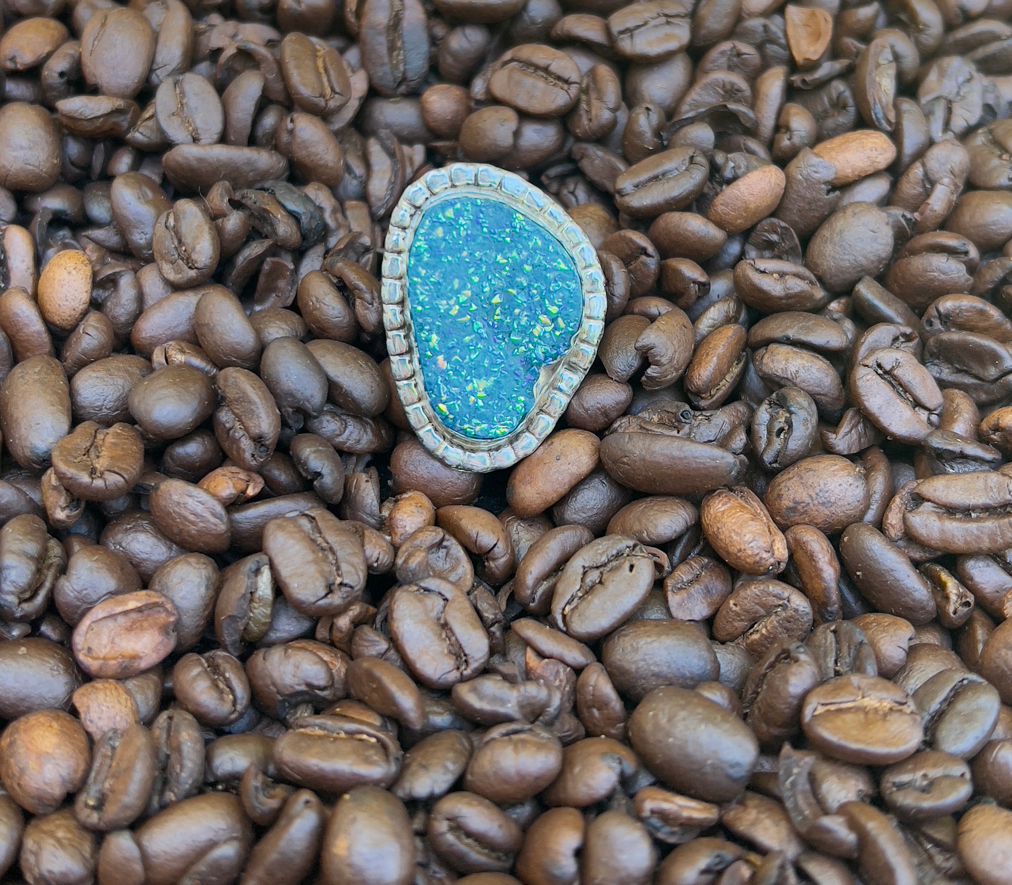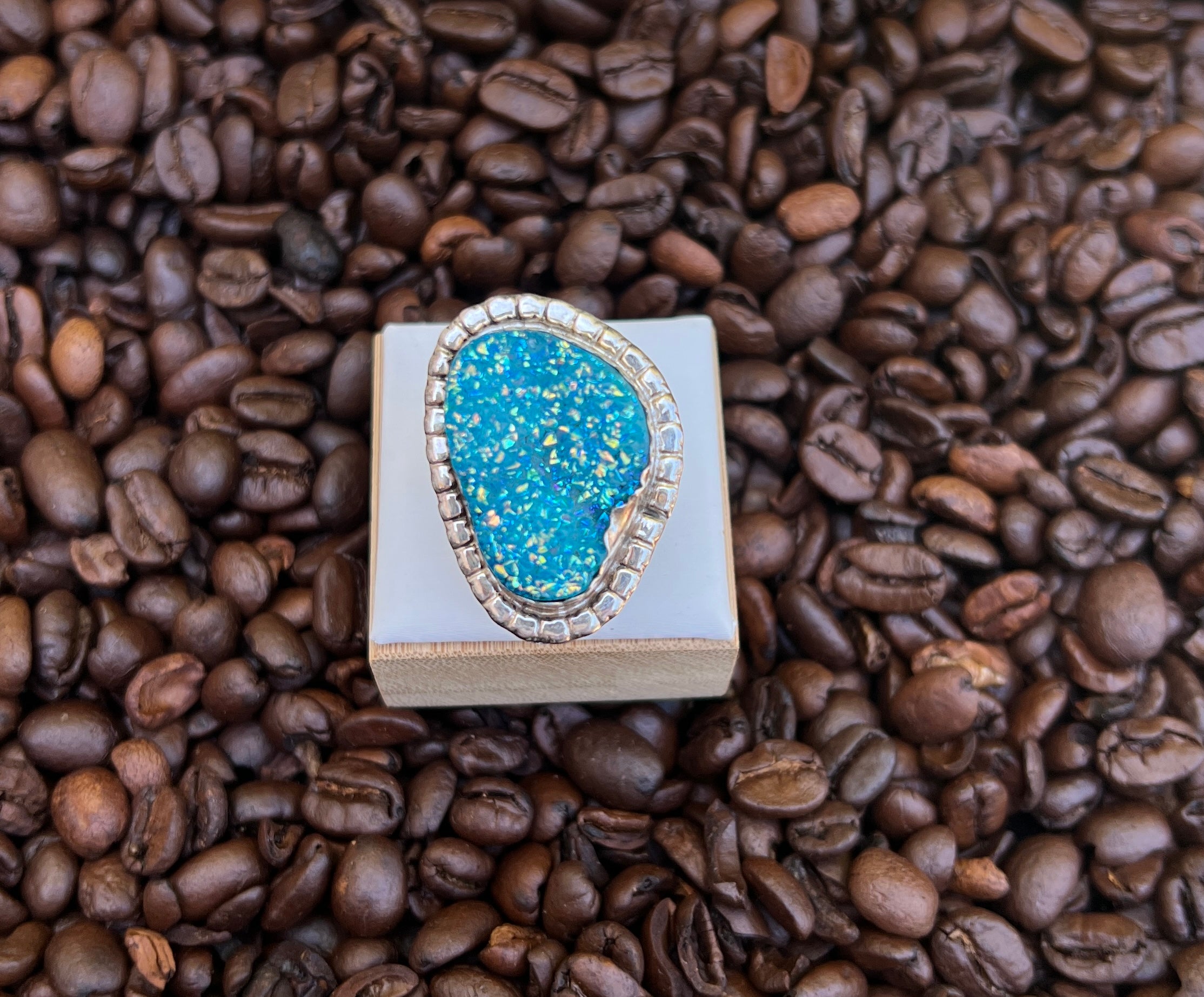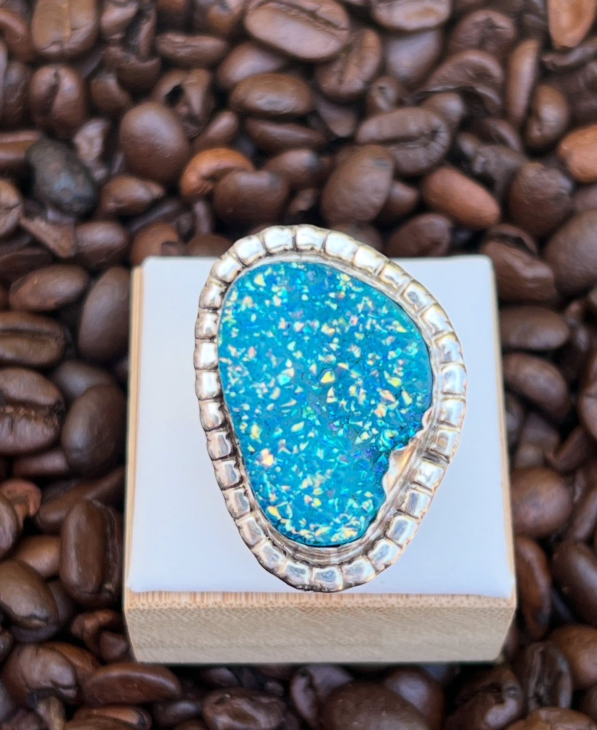 Navajo J. Butler Rare Blue Druzy & Sterling Silver Ring- 8