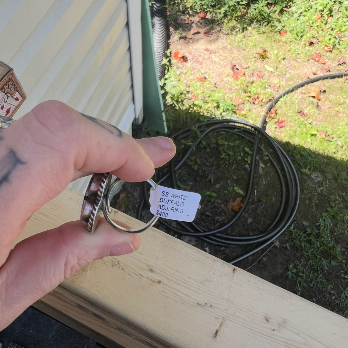 RARE, Gallery Quality Johnny Dixon White Buffalo Adjustable Ring — Sterling Silver
