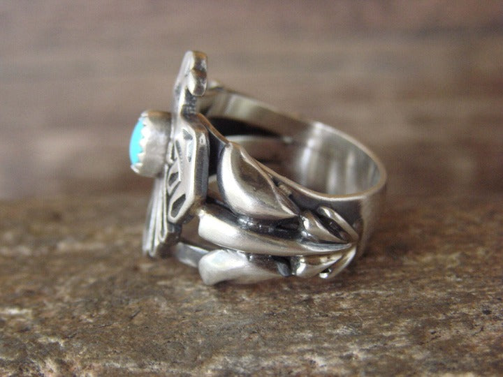 This is a Native American Navajo Handmade Sterling Silver Kingman Turquoise Eagle Ring by Genevieve Francisco. May vary slightly.