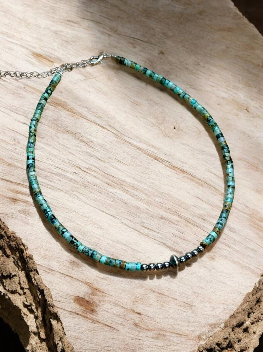 African Turquoise Heishi & Sterling Silver Pearl Necklace