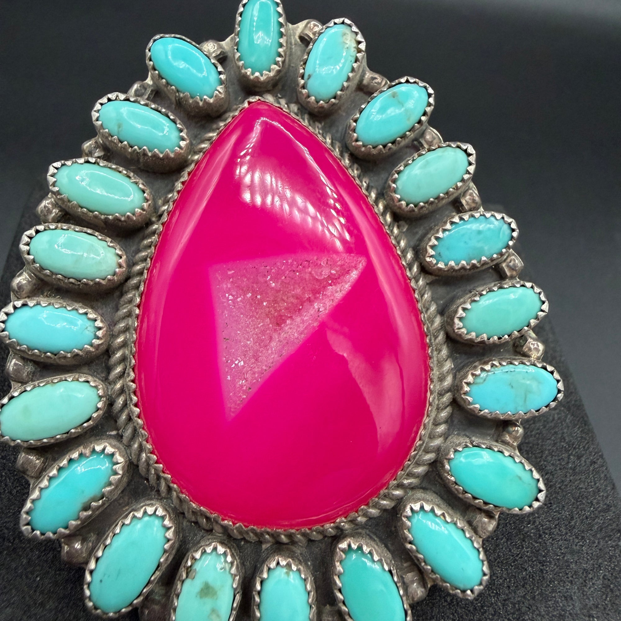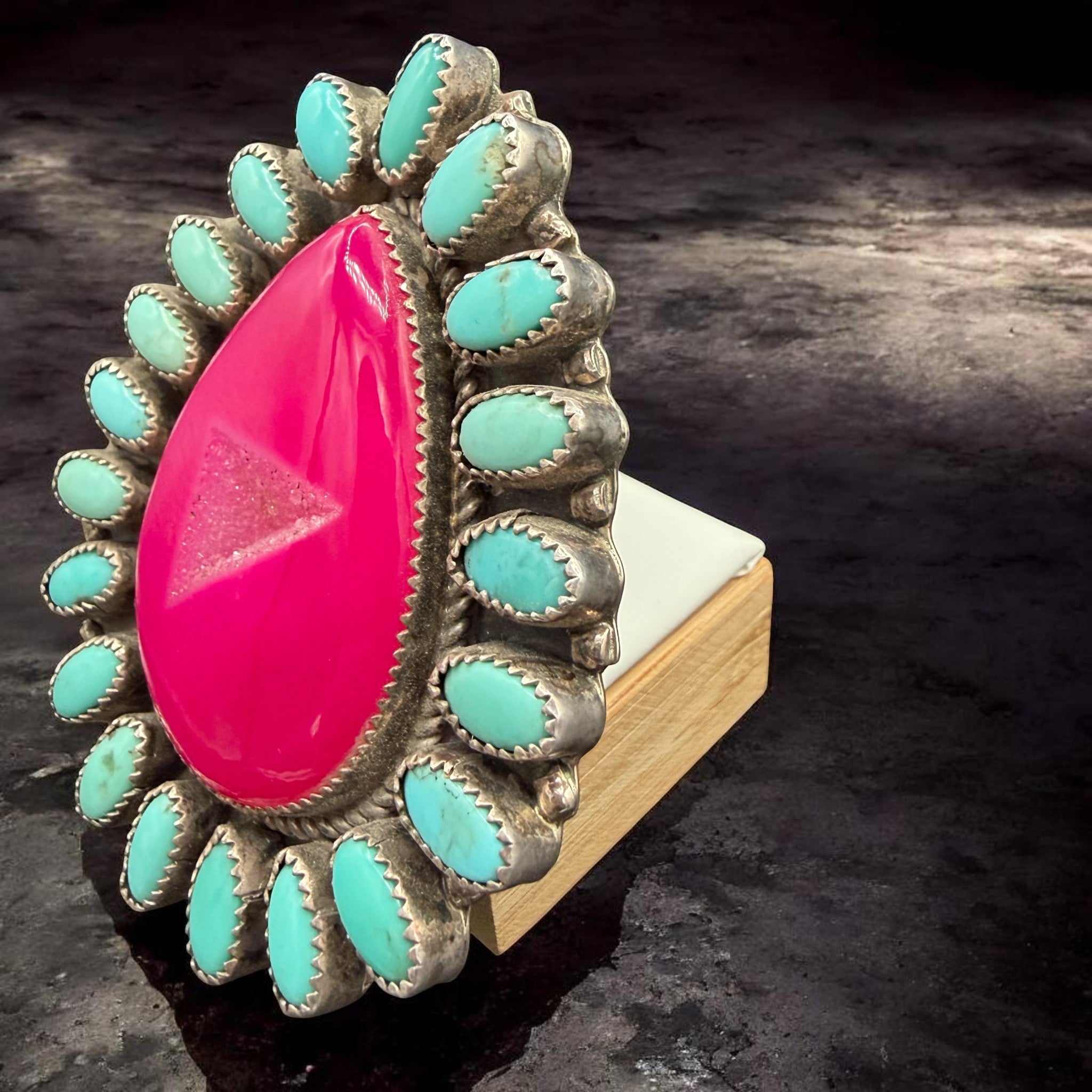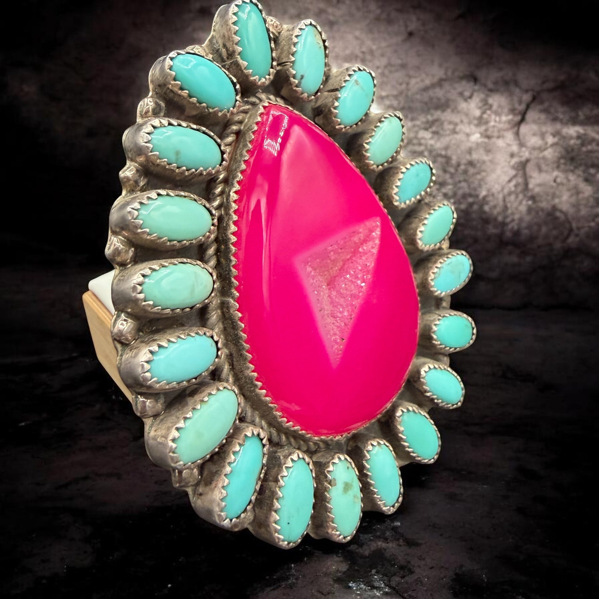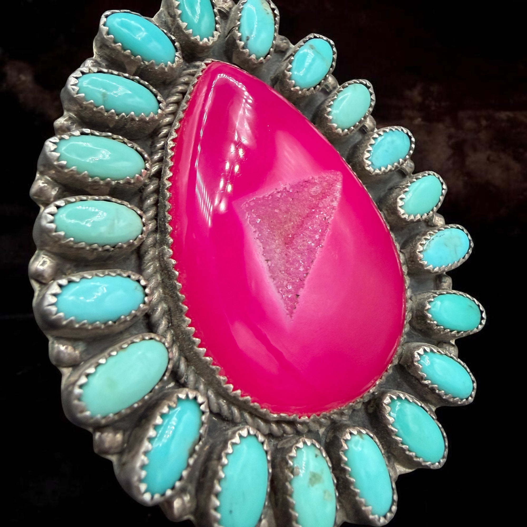 Barbie Party HUGE Hot Pink Druzy & Turquoise Cluster Ring – Size 8.25 By R. Johnson
