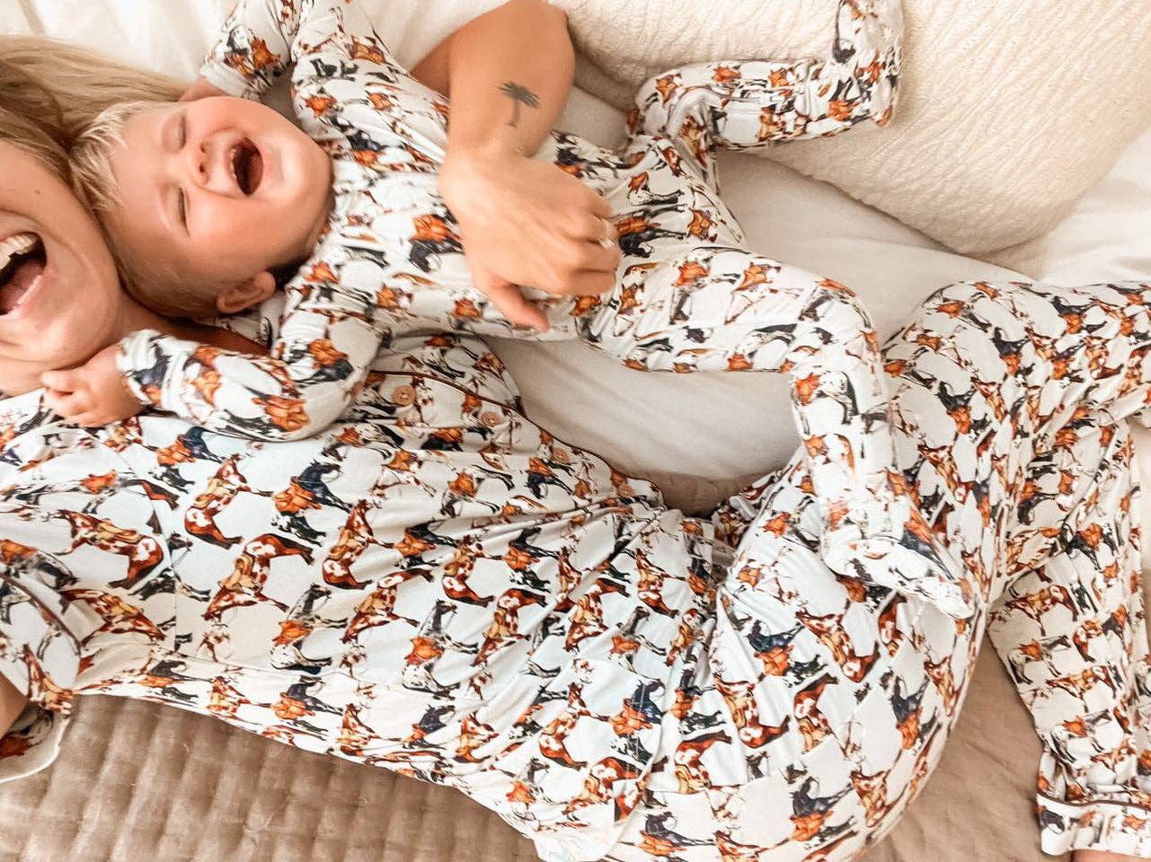 All our pajamas are made out of Bamboo viscose with a touch of spandex to allow stretch. Bamboo is soft and breathable so naturally perfect for our skin.