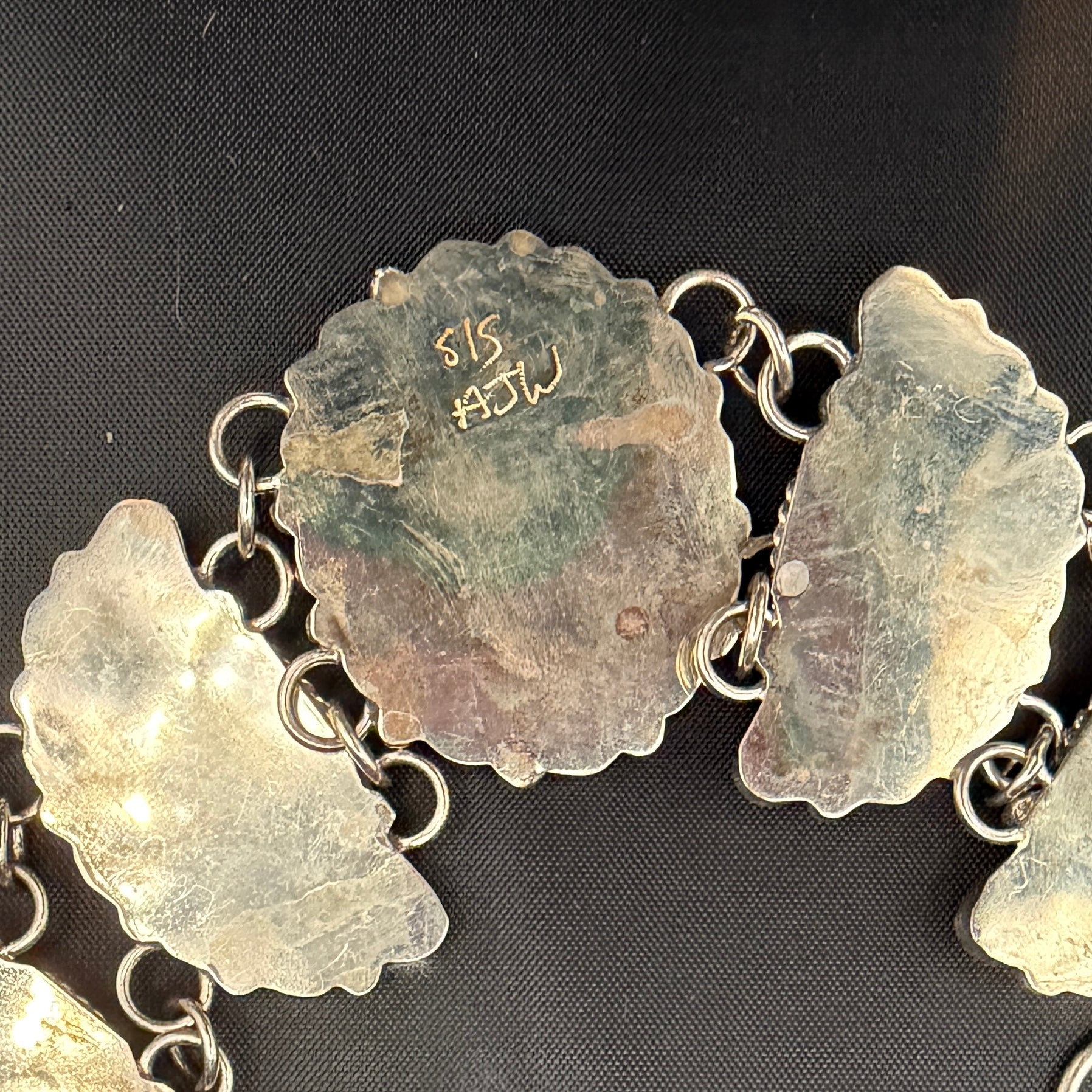 Every stone is placed in Alicia’s signature deep, hand-notched bezels, surrounded by twisted sterling rope and dotted with classic sterling drops for dimension and texture. The clusters are linked together with heavy sterling connectors, giving the bracelet beautiful drape, movement, and heirloom-level durability.