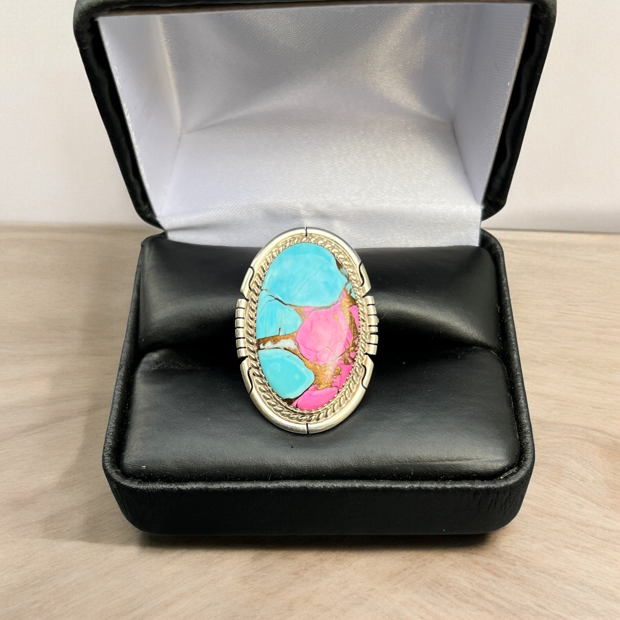Cotton Candy Oval Ring – Navajo Artist Dave Skeets (7.5)