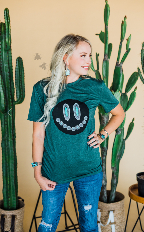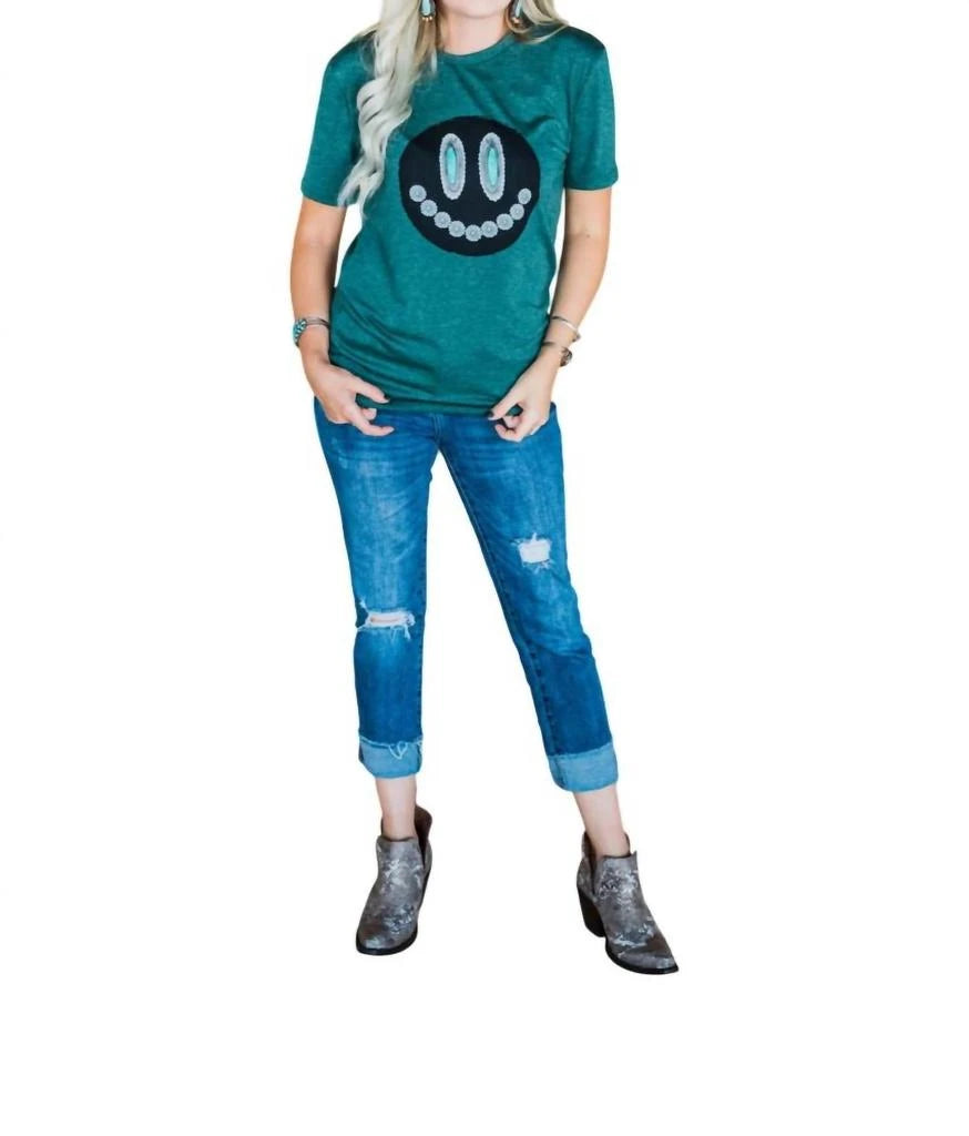 The short sleeve tee you'll want in every color.The 2 Fly Glam Grin Short Sleeve Top is a soft, stretchy tee made from 70% cotton, 20% polyester, and 10% spandex. Featuring crewneck, short sleeves and graphic design. It's available in small size with the following measurements - length - 27", chest/bust - 19", waist - 18.5", and sleeve length - 8".