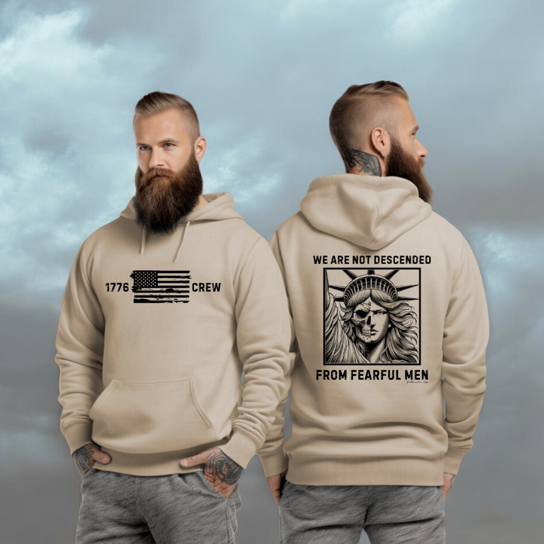 Experience the fearless spirit of our No Fearful Men Hoodie in black, perfect for both men and women who are true patriots.